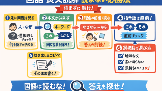 education試験対策:国語・長文読解「読まない必勝法」 国語 長文読解「読まない必勝法」 本文は読まない。設問を検索ワードにして必要部分だけ拾う。 国語は読解ではなく検索。設問が地図。 ① 先に設問を見る 人・物・行動に丸。「なぜ」「理由」「どのように」に線。選択肢も... 2025.12.14educationProject